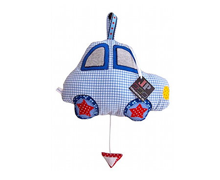 Kuschelspieluhr. Zieht man an dem Verkehrszeichen ertönt